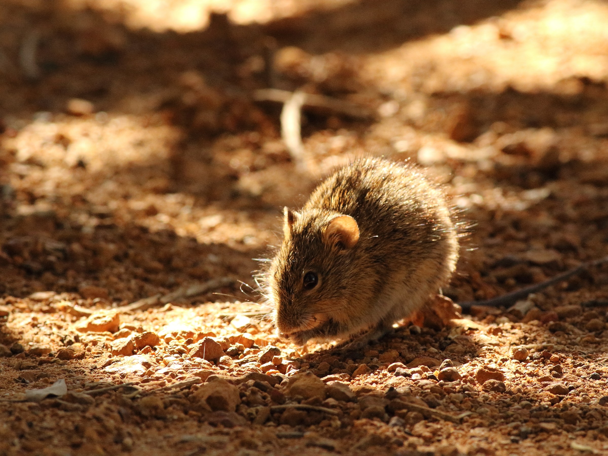 I was walking along the path to the bird hide at Intaka Island one morning, when I saw something run across the gravel pathway. The early morning light was just starting to shine through the bushes and created a soft filtered glow. I focussed my gaze and caught a glimpse of a little Four Striped Mouse in front of me.