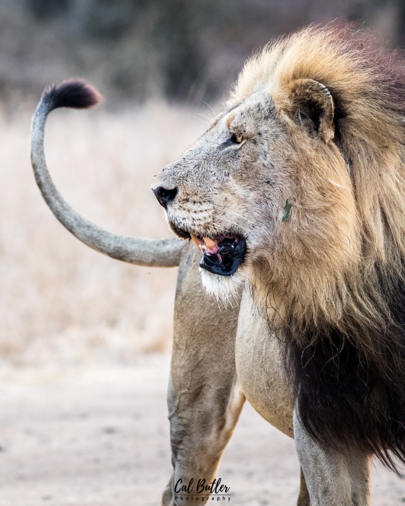 I was hoping and expecting a large male to join the pride and before I could blink again, the king of the jungle made his appearance. There was just a slight movement in the air and this just caught the edges of his mane.